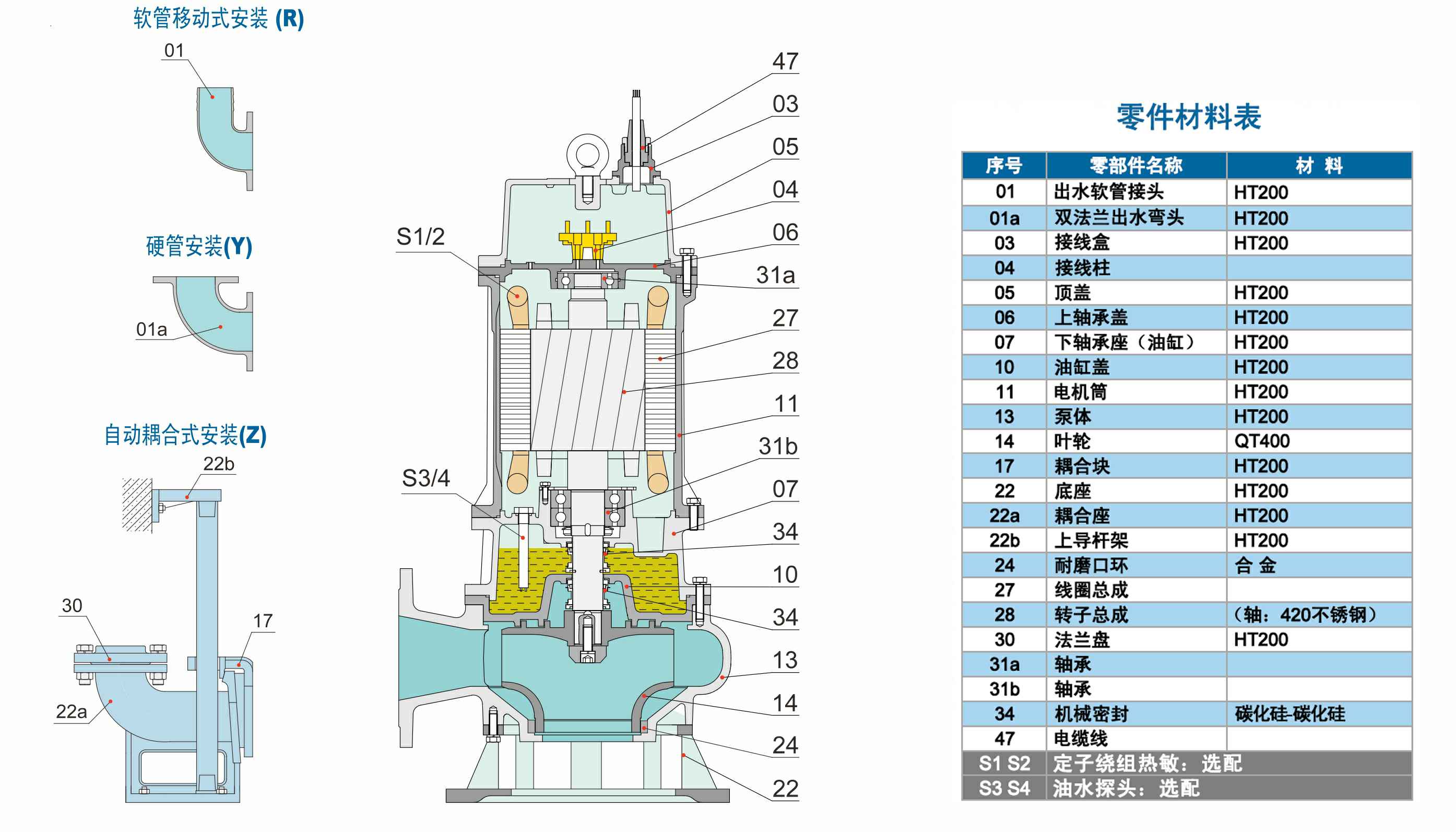 WQ系列双流道潜水排污泵结合了国内外同类优秀产品,经过PCAD软件优化设计而成,在水力模型、结构、密封、冷却和保护控制等方面进行了综合优化和创新设计。叶轮为双流道设计,有较大的进口和出口宽度,无堵塞性能好,高效节能,安全可靠,寿命长。